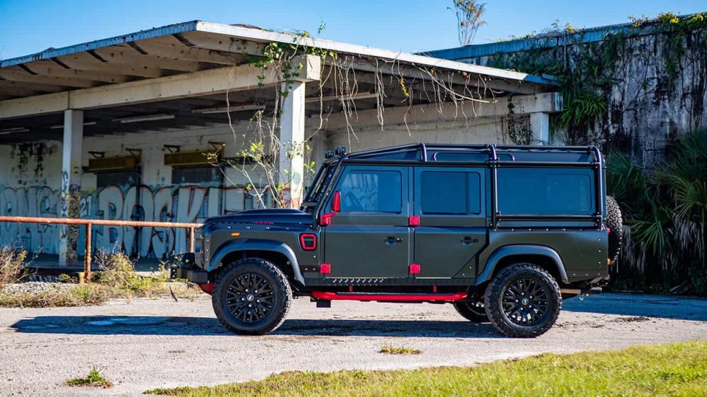 Project Tormenta Negra is another paint job first in Vulkan Grey Pearl in an eggshell finish. The matte-painted custom Defender 110 not only has a unique main color, but the design opted to have a majority of the build’s subtle exterior accents in a shocking bright red color. The side mirrors, hinges, and side steps are just some of Tormenta Negra’s custom red accented parts. This build is a great example for those who want a splash of color without overwhelming the vehicle. You can see Tormenta Negra here.
